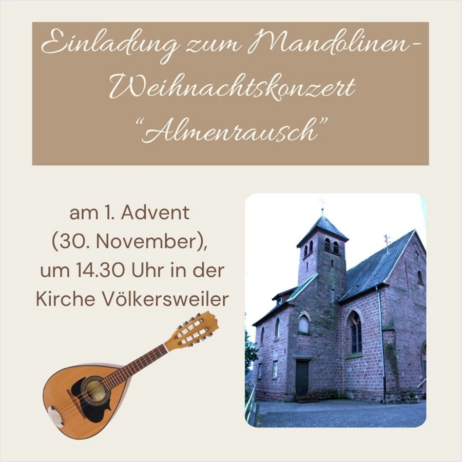 am 1. Advent (30. November 2025), um 14.30 Uhr in der Kirche in Völkersweiler